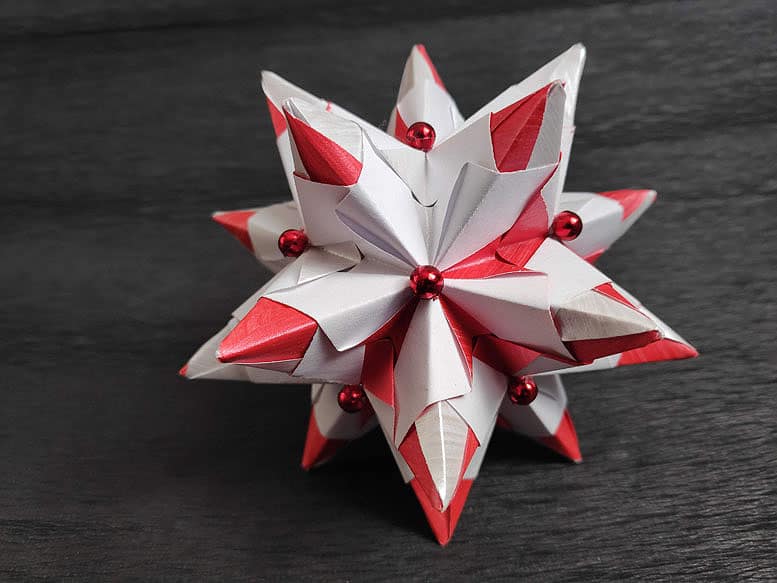 Кусудама Layered Poinsettia Автор Meenakshi Mukerji Размер бумаги 3на12см Размер кусудамы около 12см Основа Торнило Автор Paolo Bascetta Размер бумаги 8,5на8,5см